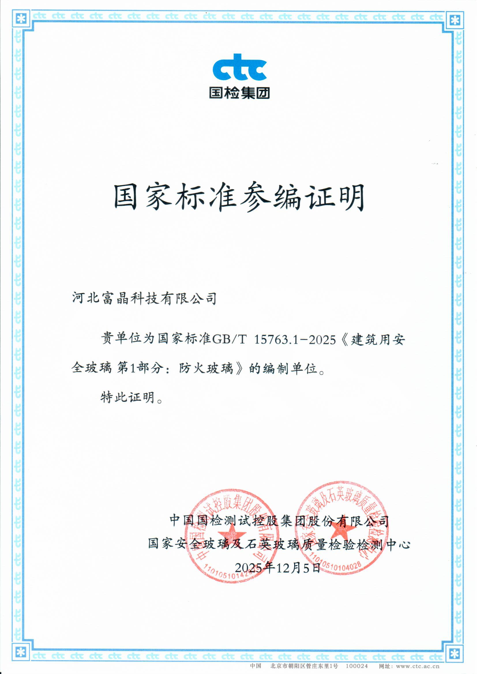 富晶科技|國家標準參編單位認證